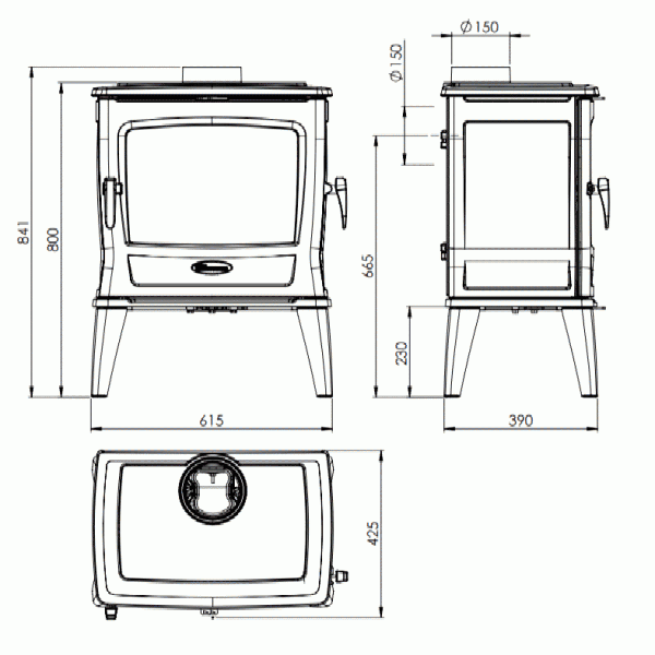 - Диаметр дымохода, мм 150