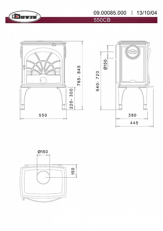 высота: 765 мм, ширина: 550 мм, глубина: 445 мм.