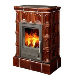 Печь-камин ABX Britania K, с кафельным цоколем, с теплообменником (коричневый)