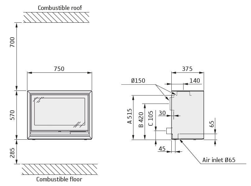 - Диаметр дымохода, мм 150