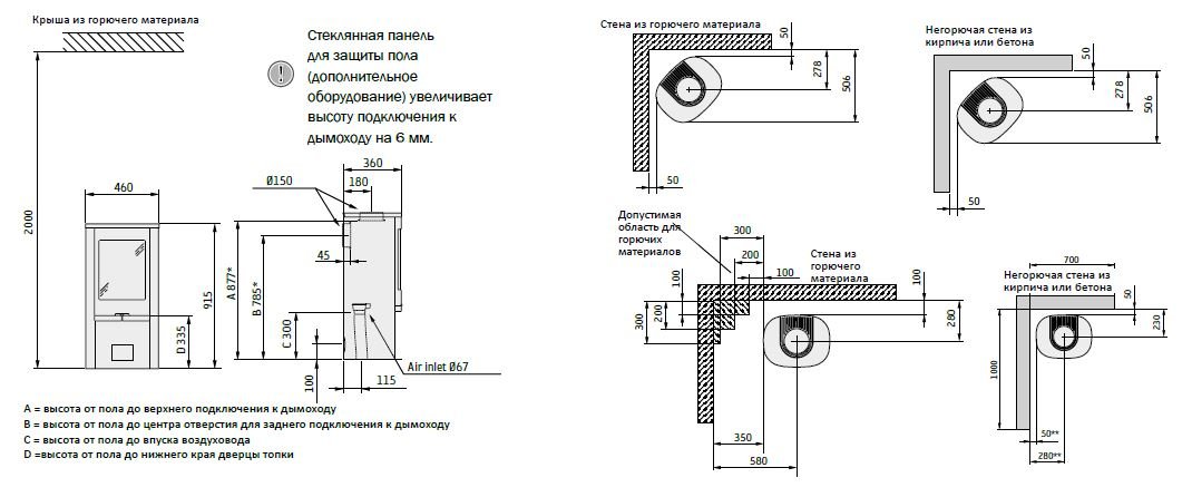 - Выход дымохода Сверху/Сзади
