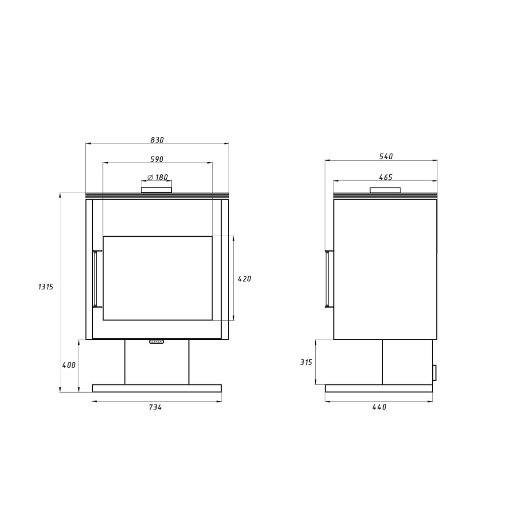 - Диаметр дымохода, мм 180