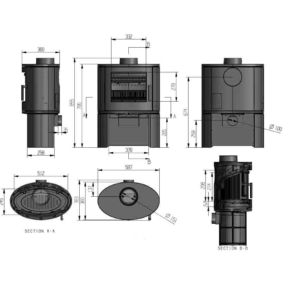 - Диаметр дымохода, мм 150