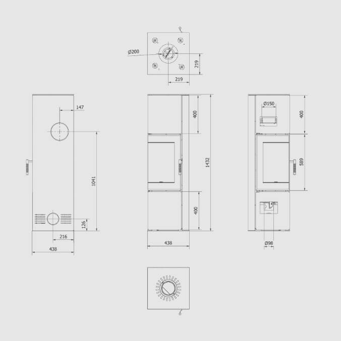 высота: 1432 мм, ширина: 438 мм, глубина: 438 мм.