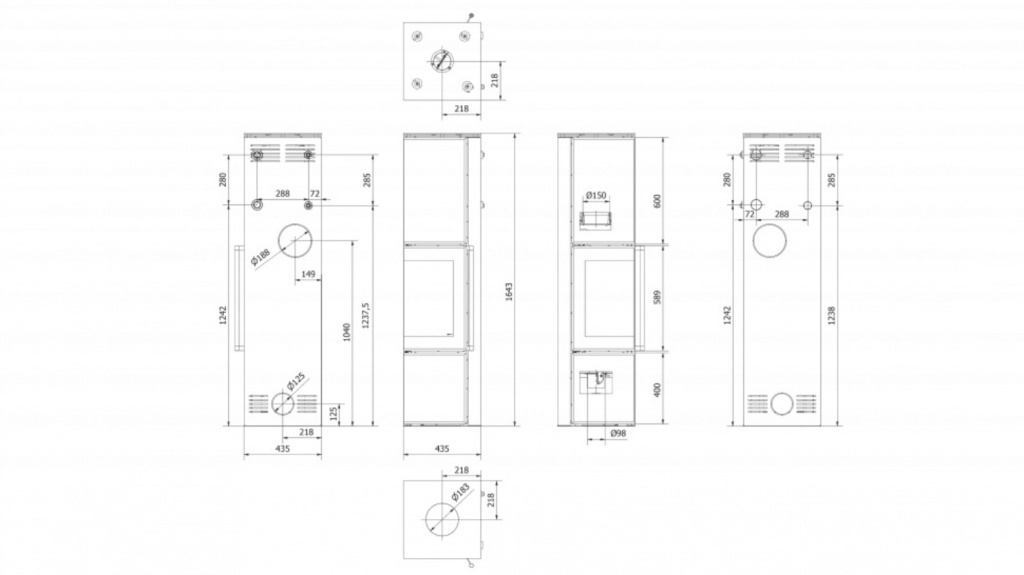 высота: 1643 мм, ширина: 435 мм, глубина: 435 мм.