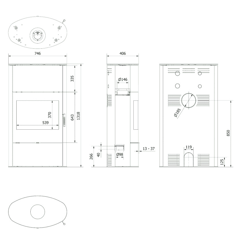 - Выход дымохода Сверху/Сзади
