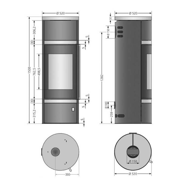 высота - 1494 мм, ширина - 520 мм, глубина - 520 мм.