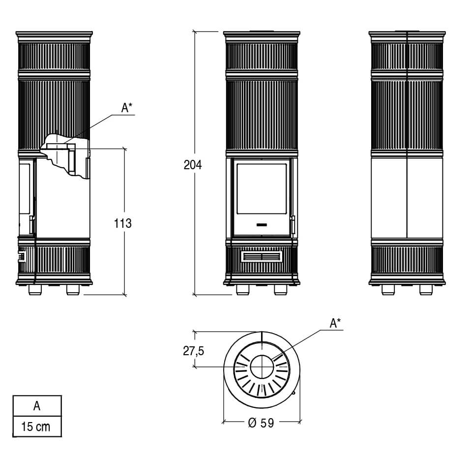 - Диаметр дымохода, мм 150