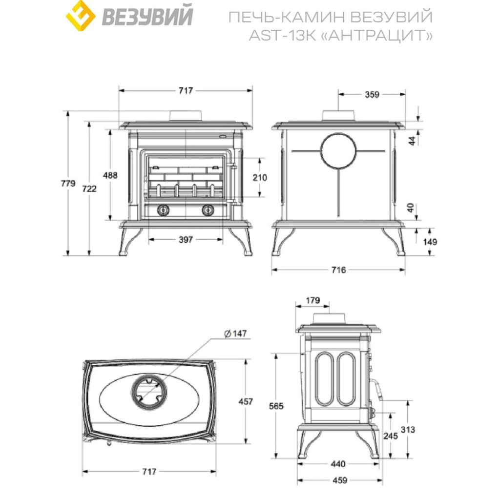 Инструкции, чертежи, документы - Печь камин Везувий AST-13К Антрацит д.150 мм
