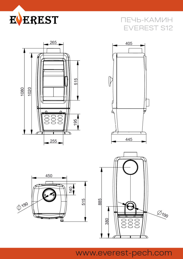 Инструкции, чертежи, документы - Печь камин Везувий Everest S12