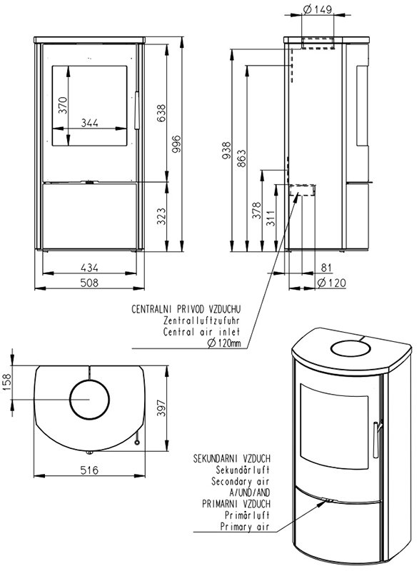 - Диаметр дымохода, мм 150