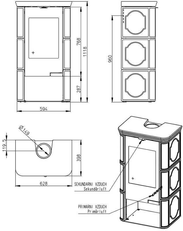 Инструкции, чертежи, документы - Печь камин Romotop Tala 09 керамика