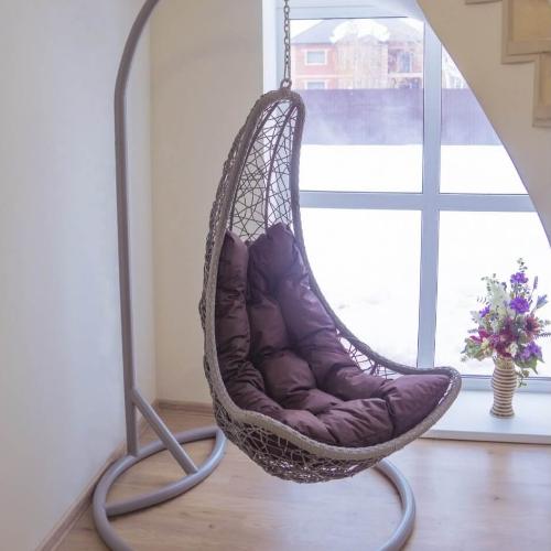 Прочное и долговечное подвесное кресло с металлическим каркасом и плетением из искусственного ротанга — это идеальное решение для создания комфортной зоны отдыха в вашем доме или саду.