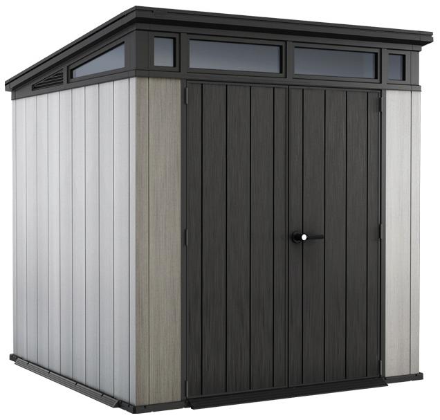 Практичный домик для инструментов Artisan 7x7 выглядит очень современно. Простой фасад, плоская крыша, большие двустворчатые двери и интересно скомпонованные окна – отличительные черты этого продукта. Домик изготовлен из высококачественного пластика DUOTECH™, а крыша дополнительно укреплена стальной конструкцией, благодаря чему он выдерживает нагрузку снегом до 200 кг/м2. В домике поместятся не только садовые инструменты и аксессуары, но и газонокосилка со стремянкой. Можно покрасить домик в соответствии с индивидуальными цветовыми предпочтениями.