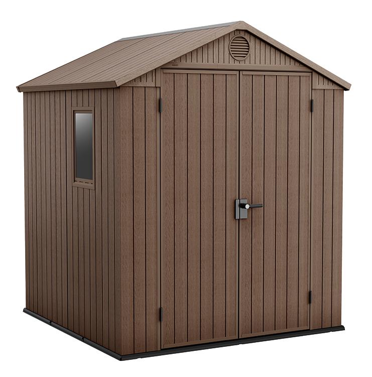 У Darwin есть все, что должно быть у хозяйственного домика. Его материал, хоть с виду и на ощупь напоминает обычное дерево, обладает свойствами, несравнимыми с каким-либо другим пластиком. Благодаря использованию разработанного нами композитного материала Evotech домик Darwin не нуждается в уходе – он не ржавеет, не облупляется и не гниет. Упакован специальным компактным способом, поэтому помещается в автомобиле. Техника соединения шип-паз упрощает и ускоряет монтаж – не требуются никакие специальные инструменты. Домик Darwin будет служить и радовать Вас своим видом многие годы.