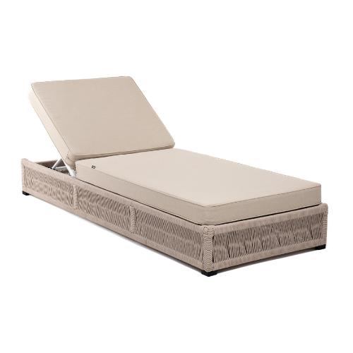 Шезлонг 4SiS Ривьера плетеный из роупа, каркас алюминий белый муар, роуп бежевый круглый, ткань бежевая 052