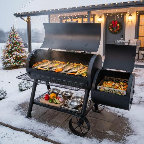 - Возможность снять пластины и переставить вытяжную трубу для использования как классический офсетный смокер