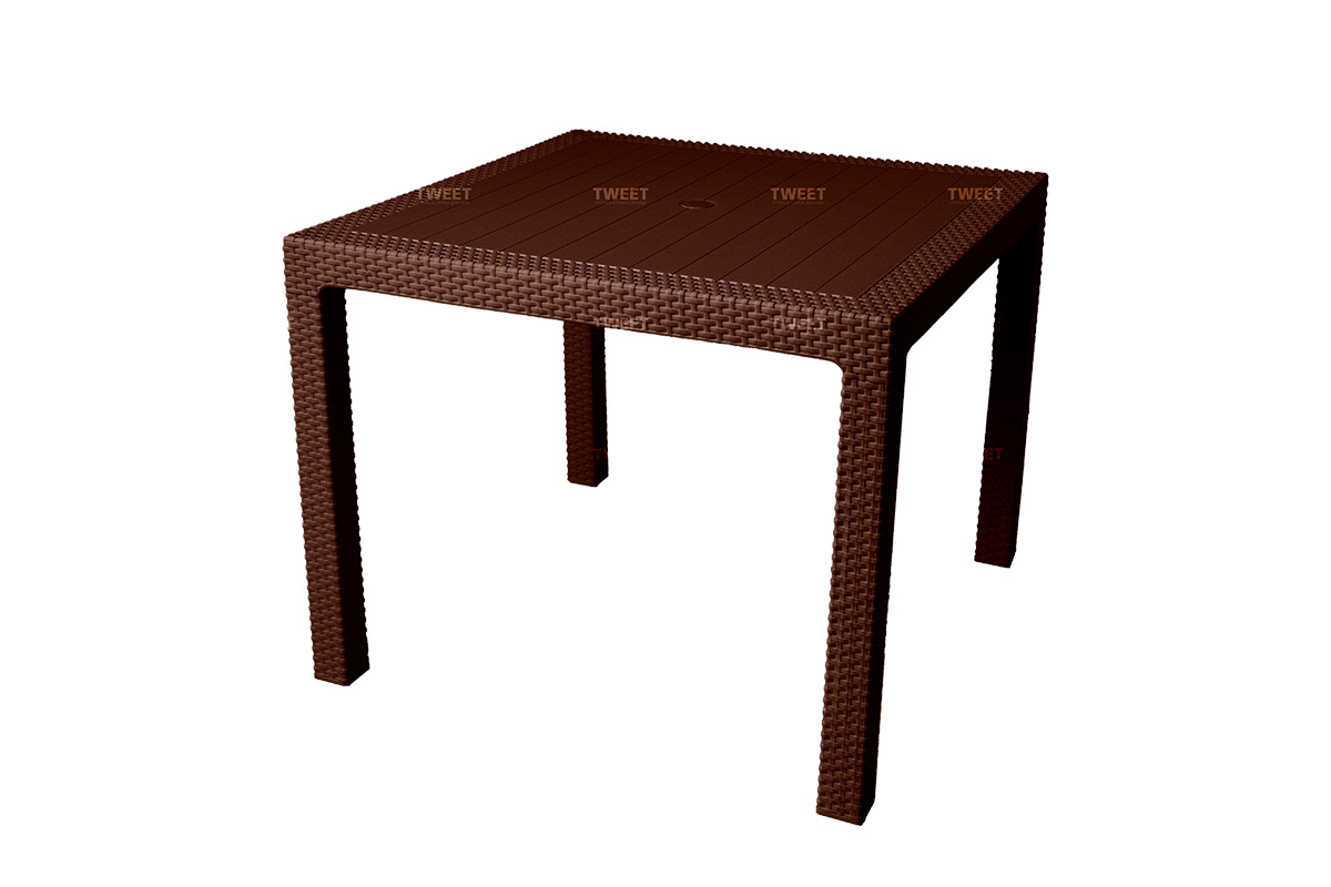 Пластиковый обеденный стол TWEET Quatro от российского производителя Gardeck на 4 персоны порадует любителей плетеной мебели своей фактурой в стиле ротанг.