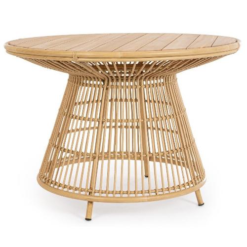 Круглый обеденный стол Adelma превосходно украсит разнообразные открытые площадки. Яркой изюминкой изделия является высококлассное плетение из синтетических волокон, которое обвивает каркас. Решетчатый дизайн основной конструкции придает модели легкость и изящность, а тиковая столешница делает изделие более мягким и гостеприимным.
