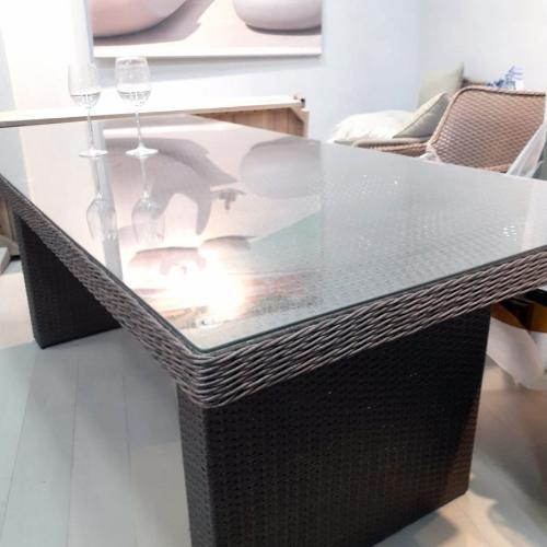 - Обеденные столы из ротанга со стеклом