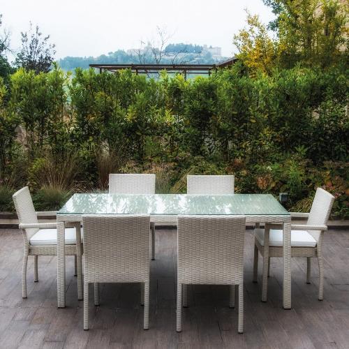 Стол плетеный со стеклом RosaDesign Linear (слоновая кость)