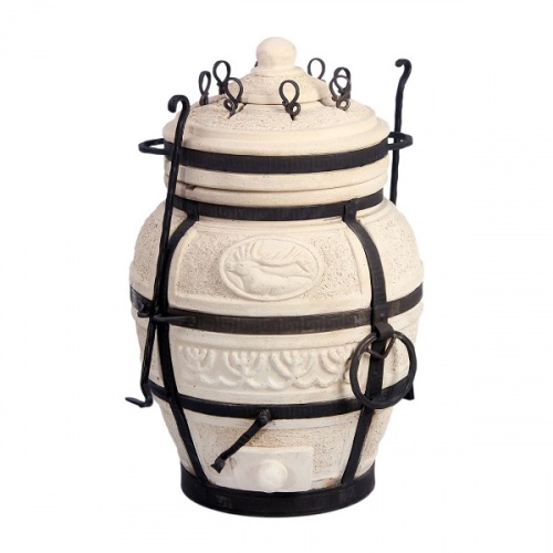 Тандыр - мангал шарообразного или кувшинообразного вида, особенностью которого является особый способ приготовления блюд. Внутрь закладываются дрова и разжигаются. Вертикально закладывается мясо (птица, рыба, дичь, овощи). Процесс приготовления осуществляется не на углях, а за счет мощной теплоотдачи стен, что обеспечивает равномерность прожаривания и сохраняет сочность продукта. Многие приобретают тандыр домой, ведь она способна не только вкусно накормить, но и стать украшением любого двора.