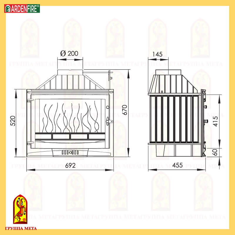 Инструкции, чертежи, документы - Каминная чугунная топка Мета Селеник 700МШ