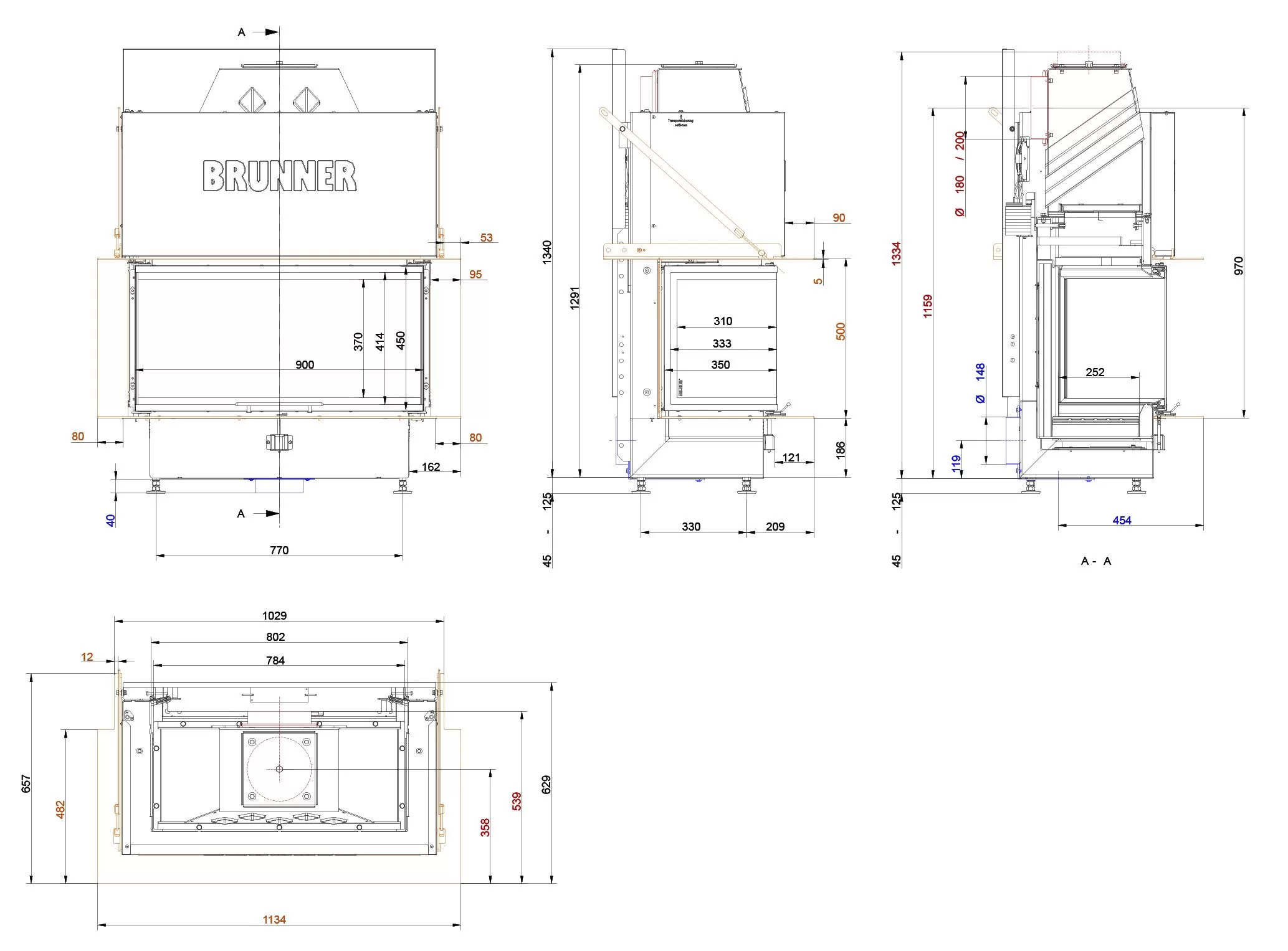 Инструкции, чертежи, документы - Каминная топка Brunner BKH Panorama 45/35/90/35 ST