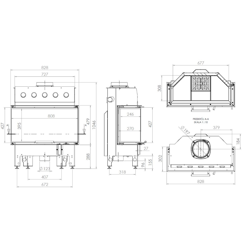 - Диаметр дымохода, мм 197