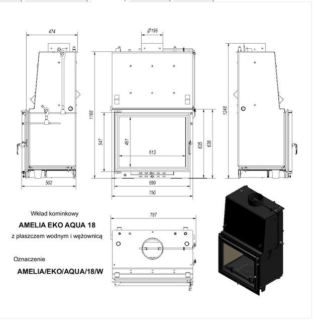 Инструкции, чертежи, документы - Каминная топка Kratki Amelia/EKO/AQUA/18/W (змеевик)