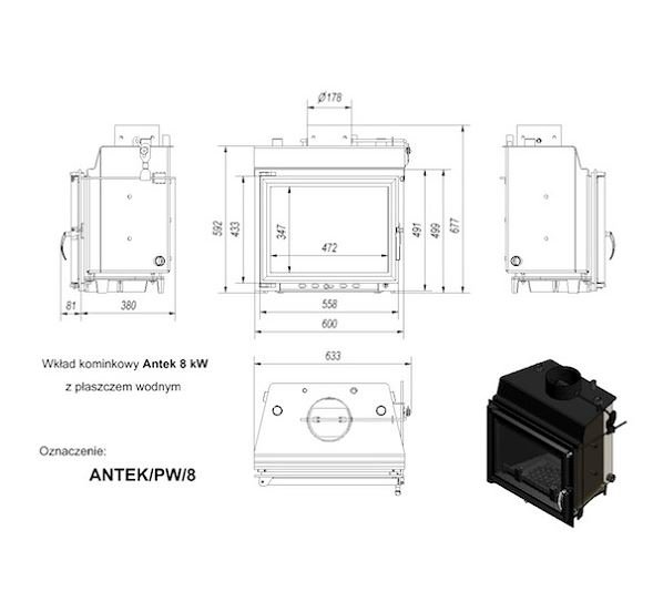 Инструкции, чертежи, документы - Каминная топка Kratki Antek/PW/8/GLASS (двойное стекло)