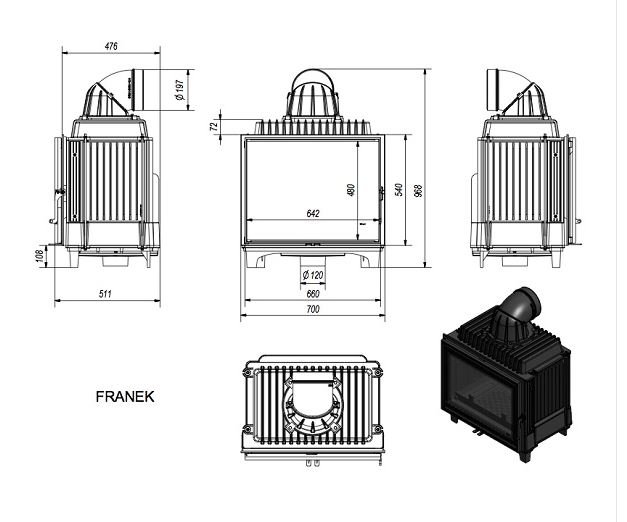 Инструкции, чертежи, документы - Каминная топка Kratki Franek/12