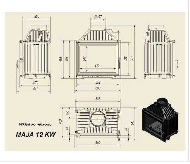 Инструкции, чертежи, документы - Каминная топка Kratki Maja/LUX
