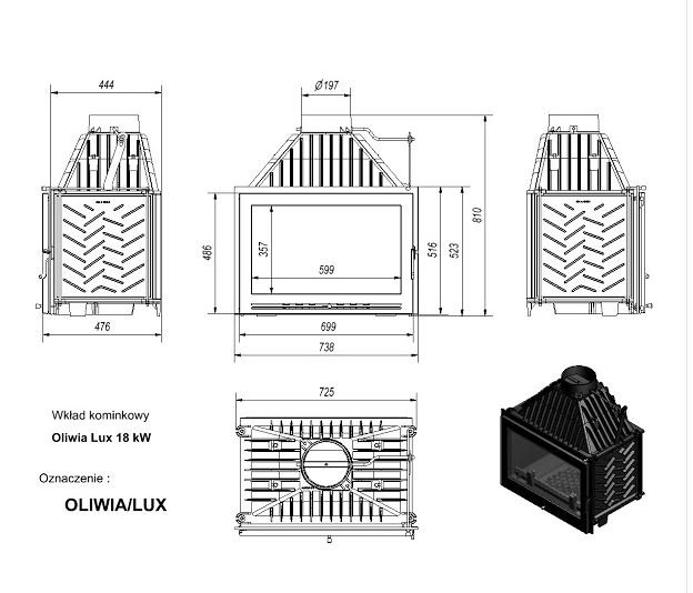 Инструкции, чертежи, документы - Каминная топка Kratki Oliwia/LUX