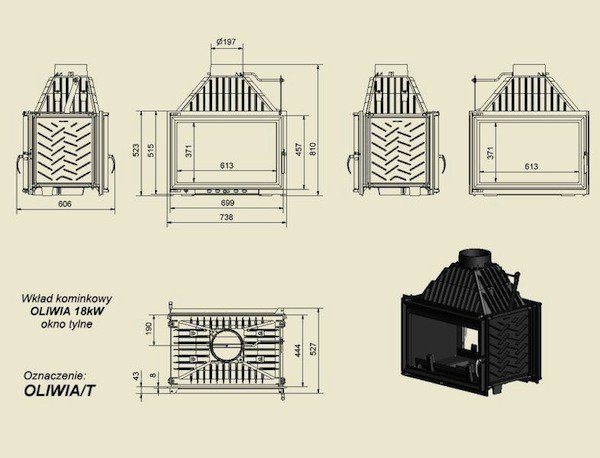 Инструкции, чертежи, документы - Каминная топка Kratki Oliwia/T (тунель)