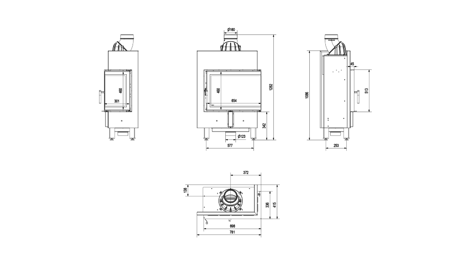 Инструкции, чертежи, документы - Каминная топка Kratki Pro Lucy/12/slim/P/BS стекло справа