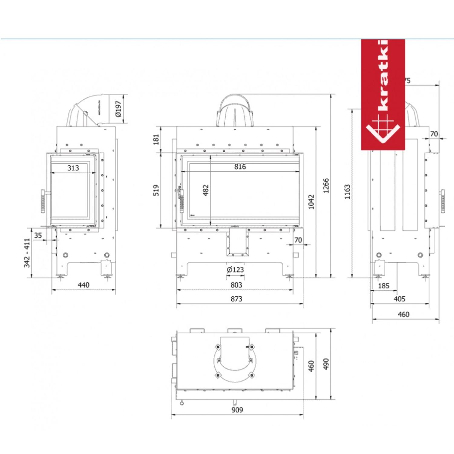 Инструкции, чертежи, документы - Каминная топка Kratki Pro Lucy/14/New угловое стекло