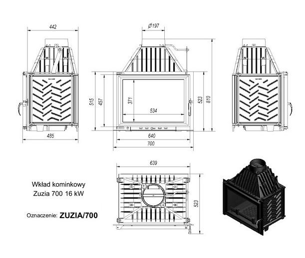 Инструкции, чертежи, документы - Каминная топка Kratki Zuzia 700