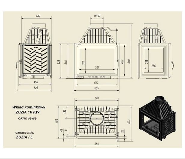 Инструкции, чертежи, документы - Каминная топка Kratki Zuzia/L (стекло слева)