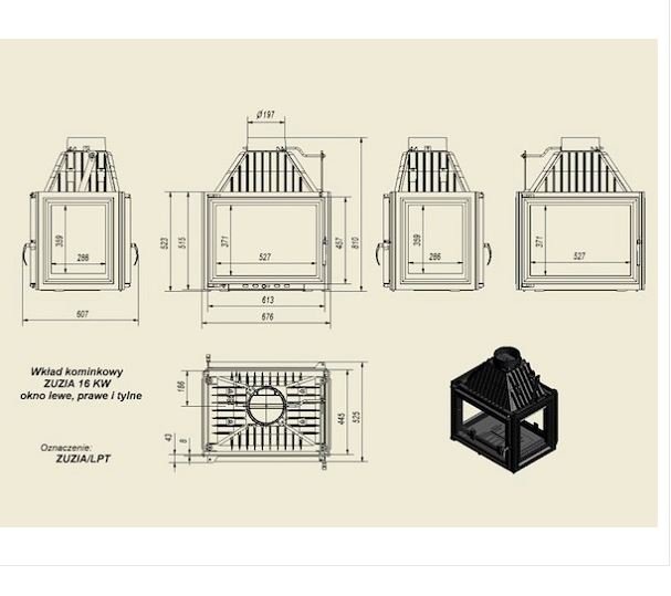 Инструкции, чертежи, документы - Каминная топка Kratki Zuzia/LPT (тунель, стекло слева-справа)