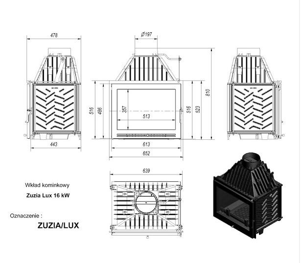 Инструкции, чертежи, документы - Каминная топка Kratki Zuzia/LUX