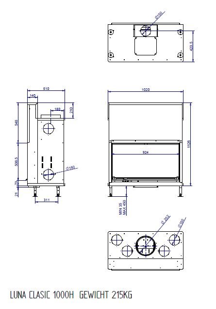 Инструкции, чертежи, документы - Каминная топка M-design Luna 1000 H Classic