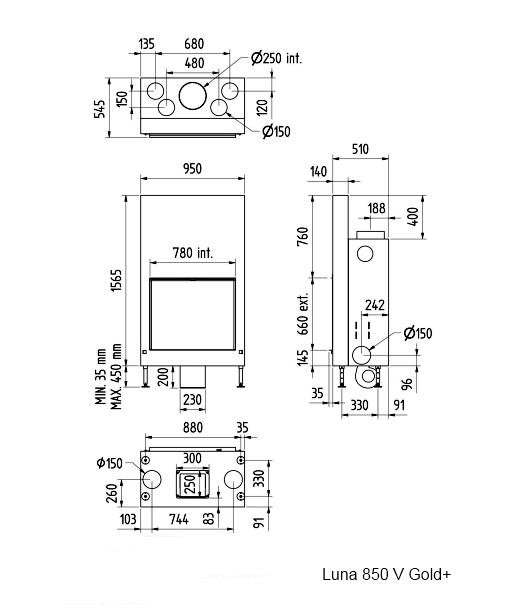 Инструкции, чертежи, документы - Каминная топка M-design Luna 850 V Gold+ (Луна 850 V Голд+)