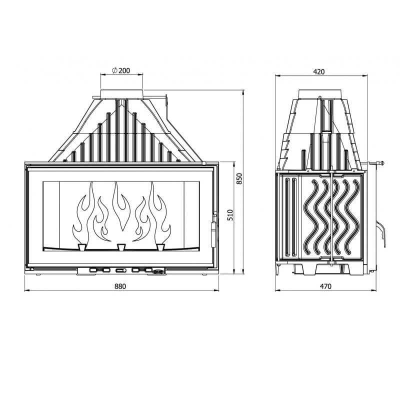 Еще одной отличительной особенностью каминных топок Kawmet является наличие встроенной шиберной заслонки с блокиратором дверцы.