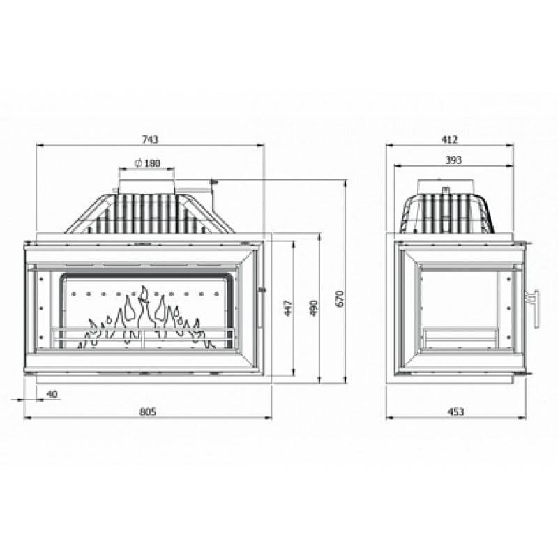 Еще одной отличительной особенностью каминных топок Kawmet является наличие встроенной шиберной заслонки с блокиратором дверцы.