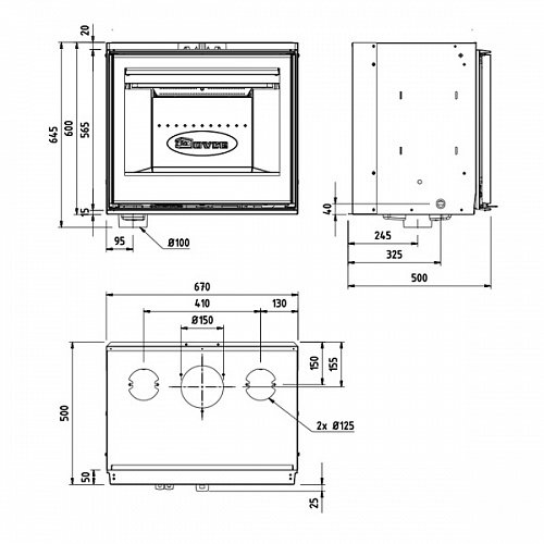 - Диаметр дымохода, мм 150