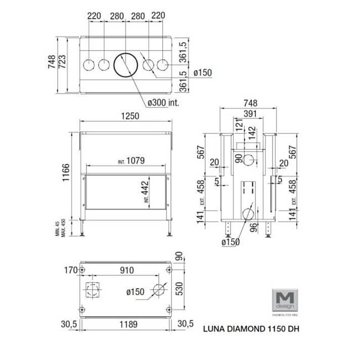 Инструкции, чертежи, документы - Каминная топка M-Design Luna 1150 DH Diamond+(Луна 1150 DH Даймонд+)