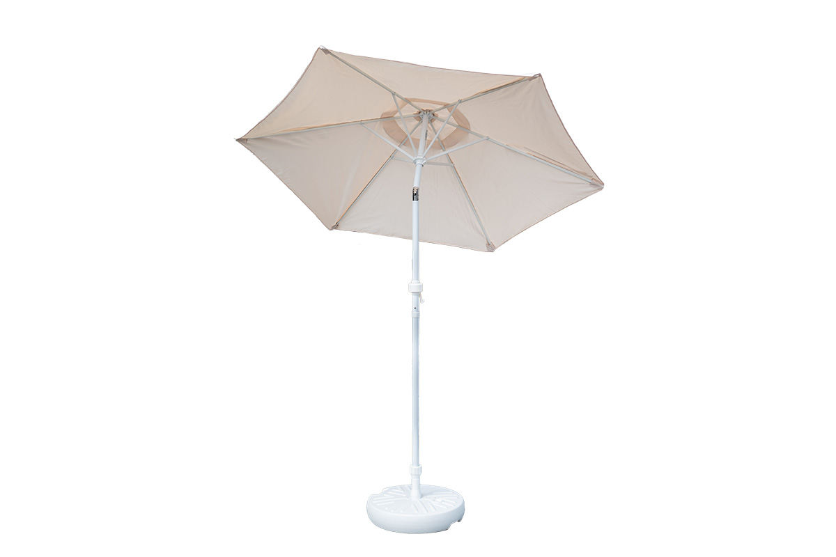 Зонт можно разместить в любое пластиковое или металлическое основание, которое приобретается дополнительно. Бетонное основание в комплект не входит.